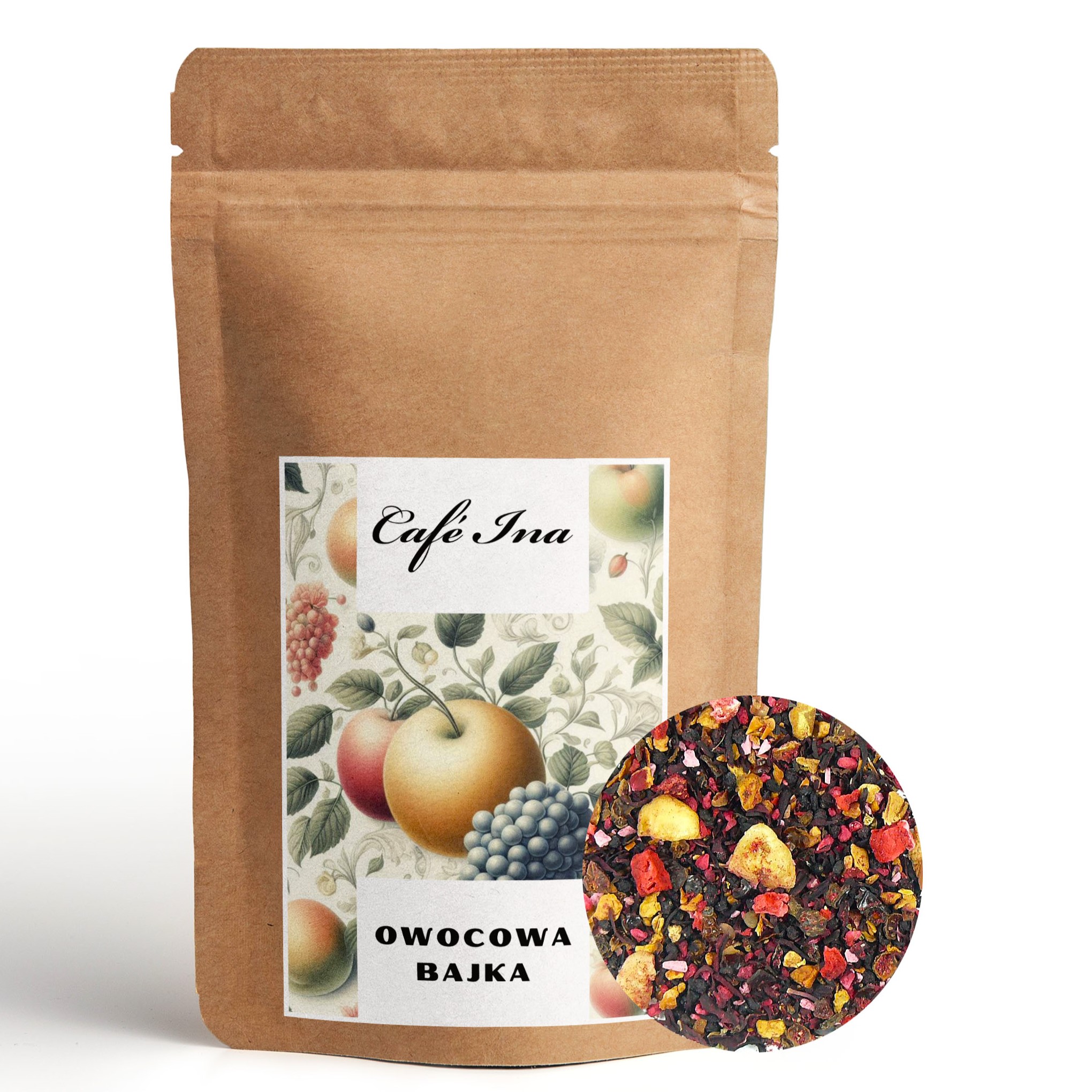 Herbata Owocowa Owocowa Bajka to niezwykła mieszanka pozbawiona dodatkowego aromatu. Owocowa Bajka powstała właśnie z myślą o dzieciach, dlatego też jej skład jest tak wyjątkowy. Herbata składa się z hibiskusa, czarnego bzu, jabłka, skórki róży, banana, gruszki, maliny oraz truskawki. Herbatka cechuje się słodkim owocowym smakiem z nutą banana. Mieszkanka sprawdzi się świetnie dla każdego, kto lubi orzeźwiający owocowy smak.
