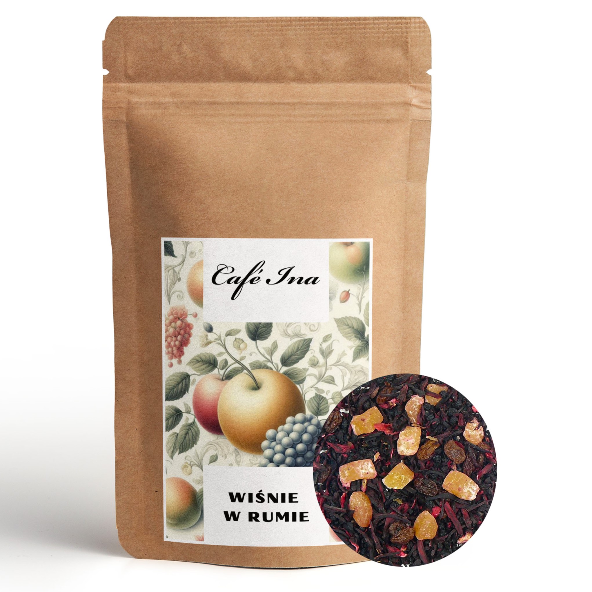 Owocowa Herbata Wiśnie i Rum to połączenie rodzynek, hibiskusa, wiśni, ananasa, czarnego bzu oraz aromatu rumowego. Herbata owocowa Wiśnie i Rum to świetna propozycja na jesienne lub zimowe dni. Dzięki DUŻEJ zawartości czarnego bzu wspomoże naszą odporność oraz rozgrzeje. Herbata o bardzo mocnym, wyrazistym zapachu.